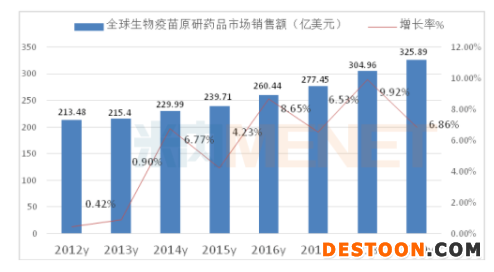 資料顯示,2019年全球疫苗市場達到325.89億美元,同比上一年增長6.86%。北美和西歐板塊占全球疫苗市場主導地位。TOP5疫苗廠商是葛蘭素史克、默沙東、輝瑞、賽諾菲巴斯德等四家公司占據總體市場超過90%的市場份額。