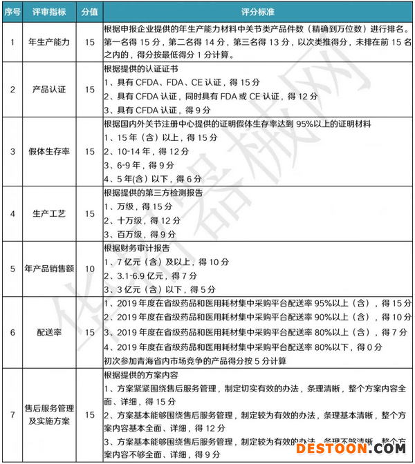 附:骨科關(guān)節(jié)類耗材集中采購評分標(biāo)準(zhǔn)