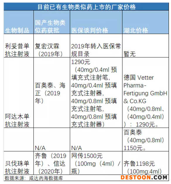 復宏漢霖和信達藥業(yè)各有2個生物類似藥獲批,是國內(nèi)目前獲批生物類似藥最多的廠家。阿達木單抗注射液(商品名:修美樂)和貝伐珠單抗注射液(商品名:安維?。┑纳镱愃扑幖霸袕S家數(shù)已經(jīng)到達集中采購的門檻——3家,理論上可以進行集中采購了。