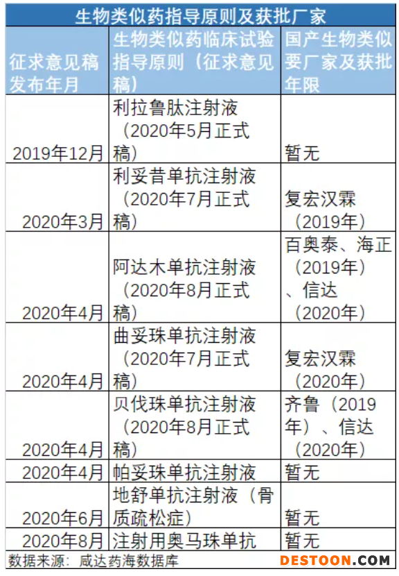 自2015年食品藥品監(jiān)管總局發(fā)布《生物類似藥研發(fā)與評價技術(shù)指導原則(試行)》以來,2019年起終于發(fā)表了一系列具體產(chǎn)品的生物類似藥臨床試驗設(shè)計指導原則。生物類似藥臨床試驗設(shè)計指導原則主要針對的是生物類似藥的上市標準。指導原則發(fā)布了,生物類似藥獲批的標準才有,生物類似藥才有可能獲批。