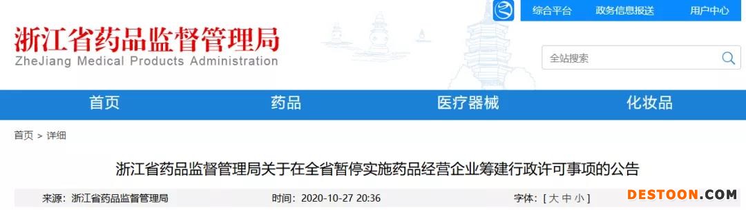 近日,浙江省藥監(jiān)局官網(wǎng)發(fā)布了《關(guān)于在全省暫停實(shí)施藥品經(jīng)營(yíng)企業(yè)籌建行政許可事項(xiàng)的公告》(以下簡(jiǎn)稱(chēng)《公告》)。