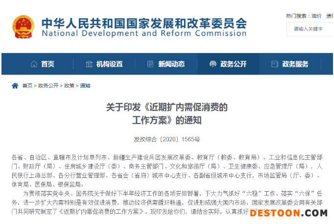 核心提示:  11月2日訊 10月29日,國(guó)家發(fā)改委官網(wǎng)發(fā)布《關(guān)于印發(fā)近期擴(kuò)內(nèi)需促消費(fèi)的工作方案的通知》(以下稱《通知》)。為抓好六穩(wěn)工