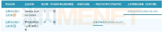 圖1:羅欣藥業(yè)提的鹽酸烏拉地爾注射液注冊(cè)情況