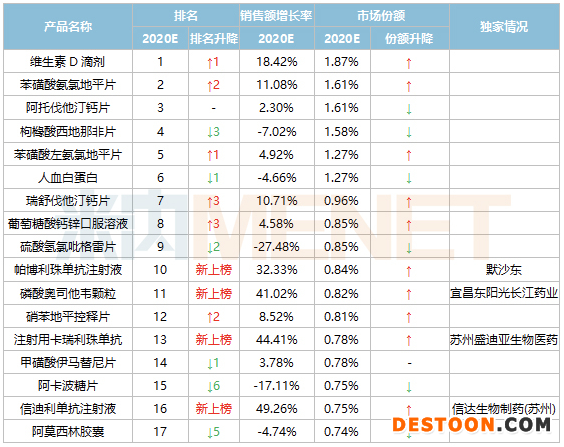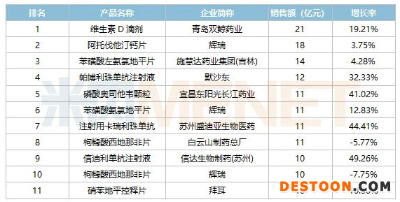 而青島雙鯨藥業(yè)的維生素D滴劑則為唯一一個(gè)超過20億的藥品品牌,增長率超過19.21%。