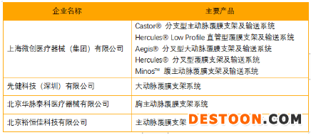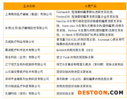 表2 國內冠脈支架主要生產企業(yè)及產品