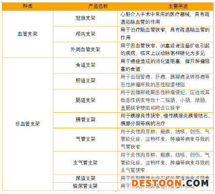 植入支架按使用范圍可分為血管支架和非血管支架,其中血管類支架產品在整個植入性支架行業(yè)中占據主導地位。血管支架又可分為冠脈支架、顱內支架和外周血管支架。