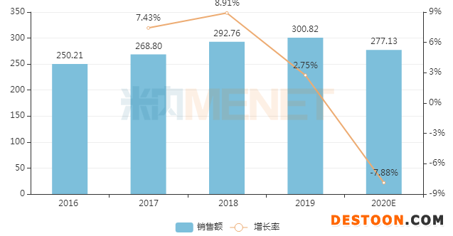米內(nèi)網(wǎng)數(shù)據(jù)顯示,近幾年來中國城市零售藥店終端呼吸系統(tǒng)中成藥銷售規(guī)模逐年上漲,2019年首次突破300億元。2020年受新冠疫情影響,預(yù)測將實(shí)現(xiàn)銷售收入277.13億元,同比下滑7.88%,占中成藥總體市場比重超過20%,銷售規(guī)模在中成藥13個大類中排名第一。