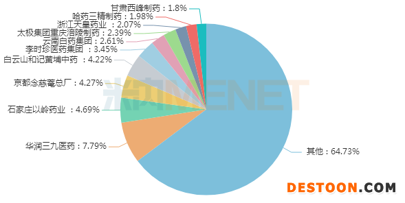 從呼吸系統(tǒng)中成藥TOP10廠家市場格局來看,華潤三九醫(yī)藥霸主地位難撼,市場份額較去年有所提升;石家莊以嶺藥業(yè)憑借獨(dú)家品種放量,市場份額明顯上升,躋身TOP3廠家;李時珍醫(yī)藥集團(tuán)、白云山和記黃埔中藥市場份額也有較大提升。