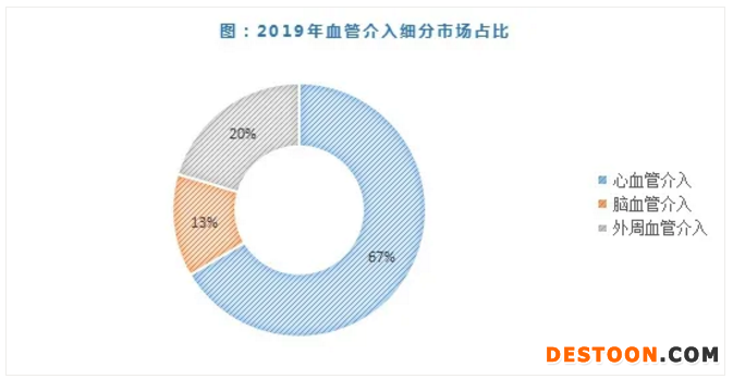 血管介入三大細(xì)分市場(chǎng)中,心血管介入一直占據(jù)最大的市場(chǎng)份額,但隨著醫(yī)療技術(shù)的發(fā)展,市場(chǎng)格局有了新的變化趨勢(shì),腦血管介入和外周血管介入市場(chǎng)份額逐步提升,心血管介入占比下降。