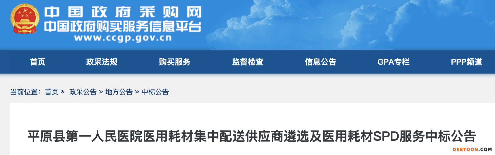 日前,據(jù)中國政府采購網(wǎng)披露,平原縣第一人民醫(yī)院醫(yī)用耗材集中配送供應(yīng)商遴選及醫(yī)用耗材SPD服務(wù)中標(biāo)公告出爐。