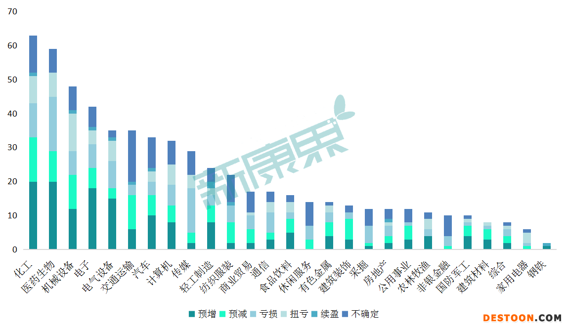 從申萬(wàn)一級(jí)行業(yè)來(lái)看,化工、醫(yī)藥生物、機(jī)械設(shè)備、電子行業(yè)披露業(yè)績(jī)的企業(yè)家數(shù)最多,同樣,這些領(lǐng)域企業(yè)的表現(xiàn)也相對(duì)突出。