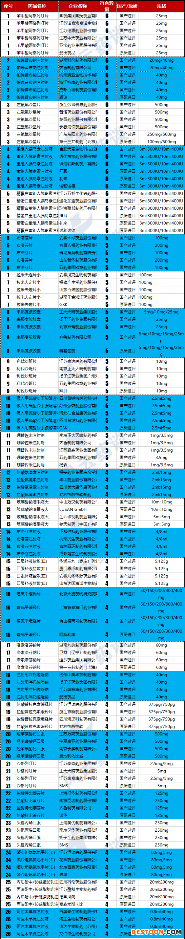 附:原研、參比、過評、視同過評、目錄集五種情況滿三家的品種名單