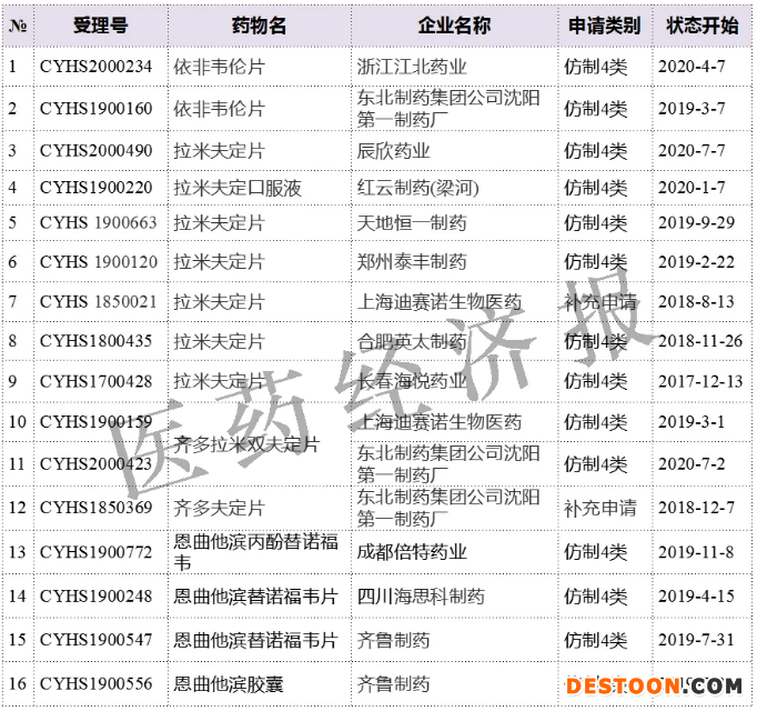 目前,還有許多廠商對替諾福韋二吡呋酯片仿制4類進(jìn)入最后階段,北京百奧藥業(yè)、蘇州東瑞制藥、蘇州弘森藥業(yè)、深圳科興生物、重慶藥友制藥、山東新時代藥業(yè)、江西青峰藥業(yè)、湖南千金湘江藥業(yè)、白云山制藥總廠等9家的替諾福韋二吡呋酯片在審評審批中(在藥審中心)。