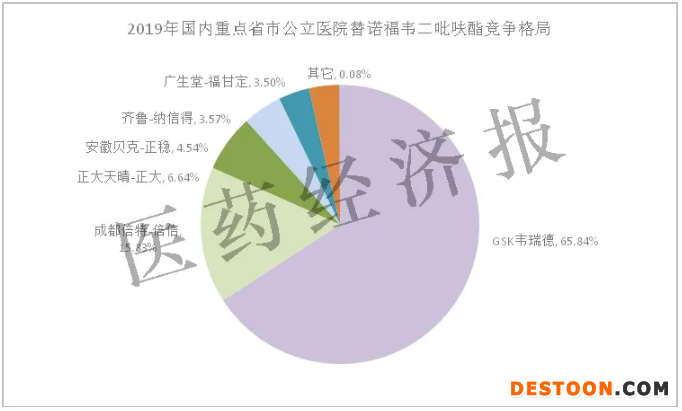 圖6 2019年國內(nèi)重點(diǎn)省市公立醫(yī)院替諾福韋二吡呋酯競爭格局