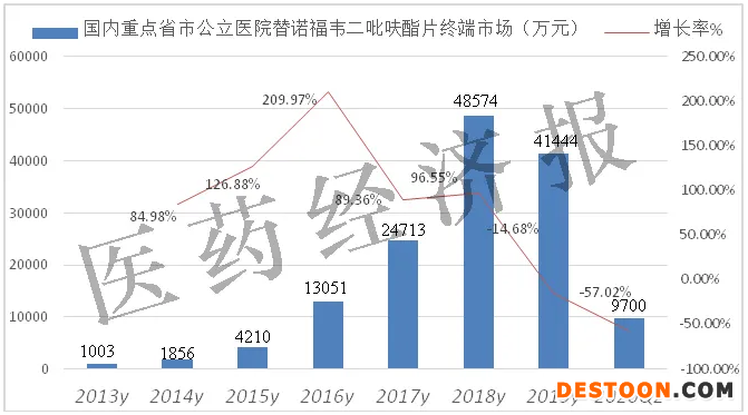 圖5 2013-2020Q2國內(nèi)重點(diǎn)省市公立醫(yī)院替諾福韋二吡呋酯市場情況
