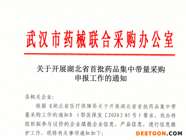 12月2日,武漢市藥械聯(lián)合采購辦公室發(fā)布《關(guān)于開展湖北省首批藥品集中帶量采購申報工作的通知》稱,根據(jù)此前的通知,將組織擬參與議價的企業(yè)填報企業(yè)信息、產(chǎn)品信息,進行信息維護工作。