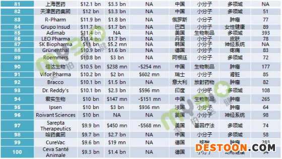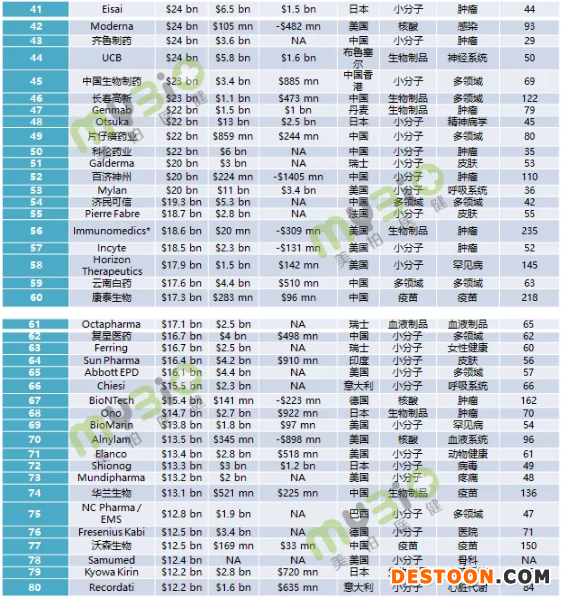 除恒瑞外,揚(yáng)子江、石藥集團(tuán)、智飛生物、豪森藥業(yè)、齊魯制藥、中國生物制藥、長春高新、片仔癀藥業(yè)和科倫藥業(yè)位居全球前50名,基本比起去年均有了較為明顯的跨越。
