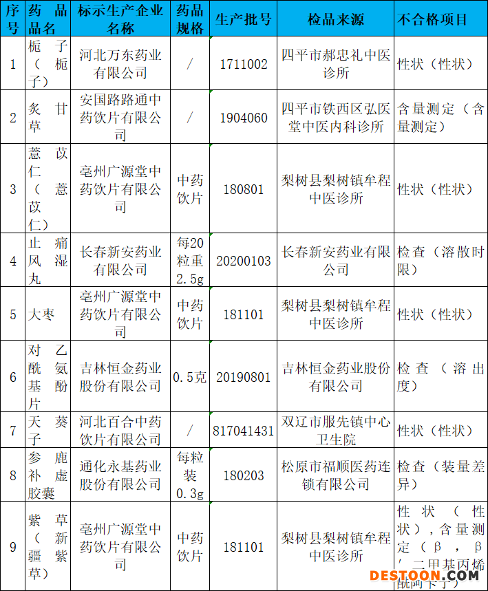 12月3日,吉林省藥監(jiān)局2020年第2期藥品質(zhì)量公告。公告顯示,有9批次藥品不符合規(guī)定,其中有3批次為制劑,分別為止痛風(fēng)濕丸、對(duì)乙酰氨基酚片、參鹿補(bǔ)虛膠囊,其余全為中藥材及其飲片。