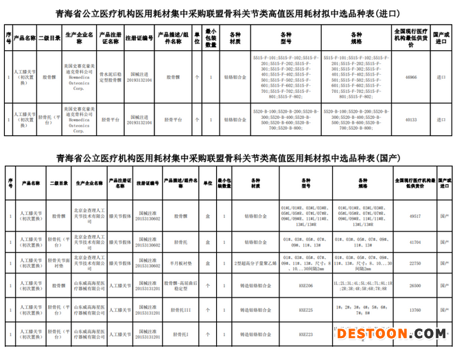 《通知》中,青海省將此前對骨科關(guān)節(jié)類高值耗材集中帶量采購的中選結(jié)果進(jìn)行了公示。