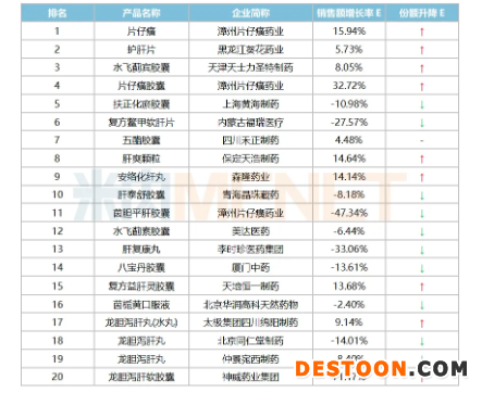據(jù)2020年全年預(yù)測(cè)數(shù)據(jù)顯示,片仔癀、片仔癀膠囊、茵膽平肝膠囊三大獨(dú)家產(chǎn)品分別位列TOP1、TOP4以及TOP11,片仔癀繼續(xù)以超高的市場(chǎng)份額坐穩(wěn)冠軍品牌寶座,而片仔癀膠囊則從去年的TOP6上漲了2個(gè)位次,茵膽平肝膠囊下滑明顯。