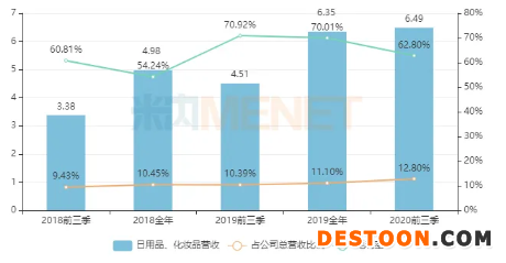 醫(yī)藥仍是片仔癀的主要營(yíng)收來(lái)源,日用品、化妝品業(yè)務(wù)占公司總營(yíng)收比例在10%左右,并有逐年上漲的趨勢(shì);而毛利率方面,從業(yè)務(wù)類別來(lái)看,日用品、化妝品是片仔癀的第二高毛利產(chǎn)品,2019年前三季度高達(dá)70.92%,2020年前三季回落至62.80%的水平。從營(yíng)業(yè)收入來(lái)看,2020前三季已經(jīng)打破了去年全年的業(yè)績(jī),預(yù)計(jì)今年全年將出現(xiàn)新峰值。