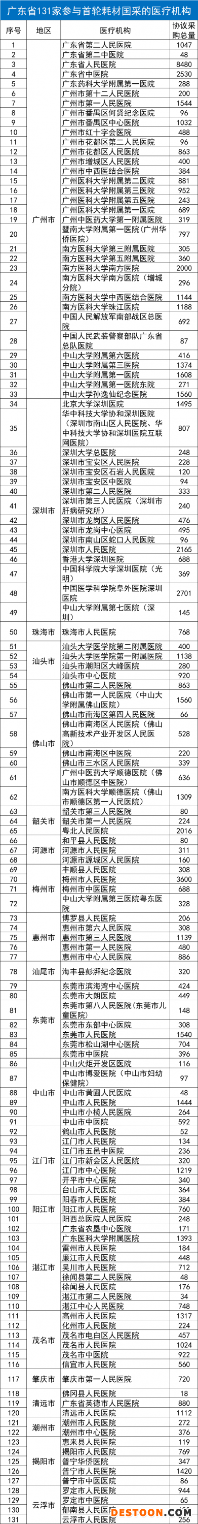 12月2日,廣東省醫(yī)保局、衛(wèi)健委、藥監(jiān)局聯(lián)合發(fā)布了《關(guān)于做好我省國(guó)家組織冠脈支架集中帶量采購(gòu)和使用工作的通知》??傆?jì)131家二、三甲醫(yī)院參與第一輪冠脈支架的國(guó)采。