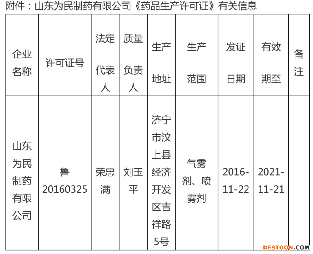附件:山東為民制藥有限公司《藥品生產(chǎn)許可證》有關(guān)信息