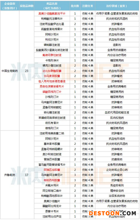 這11家藥企獲批的仿制藥中,合計有24個品種為國內首仿。