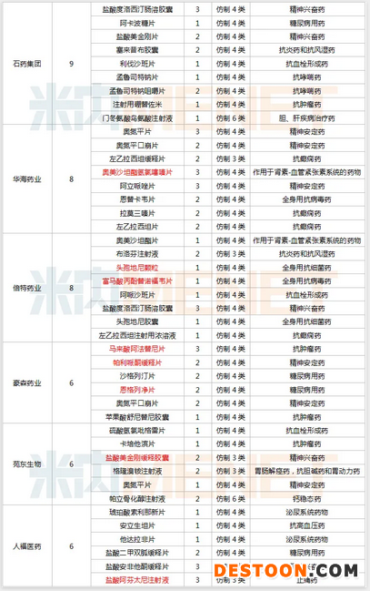 揚子江藥業(yè)集團、東陽光藥并列第四,均有13個品種獲批;石藥集團有9個品種獲批;華海藥業(yè)、倍特藥業(yè)均有8個品種獲批;豪森藥業(yè)、苑東生物及人福醫(yī)藥這3家藥企各有6個品種獲批。