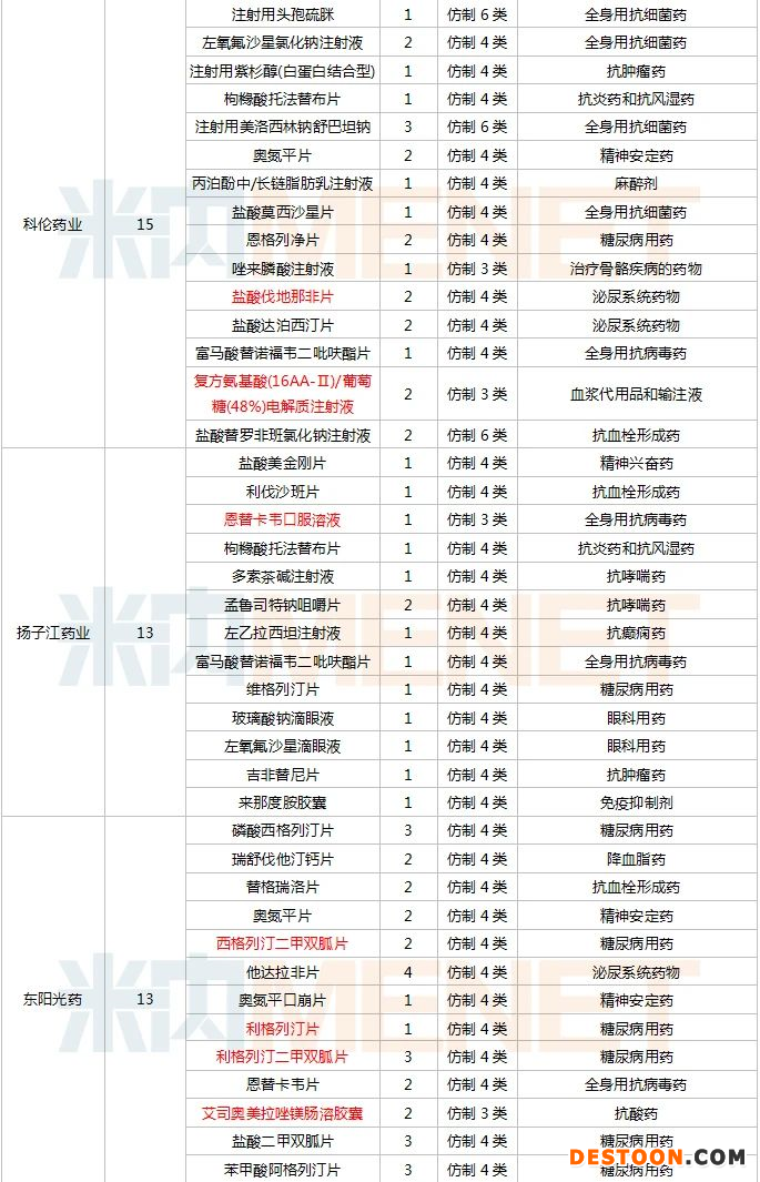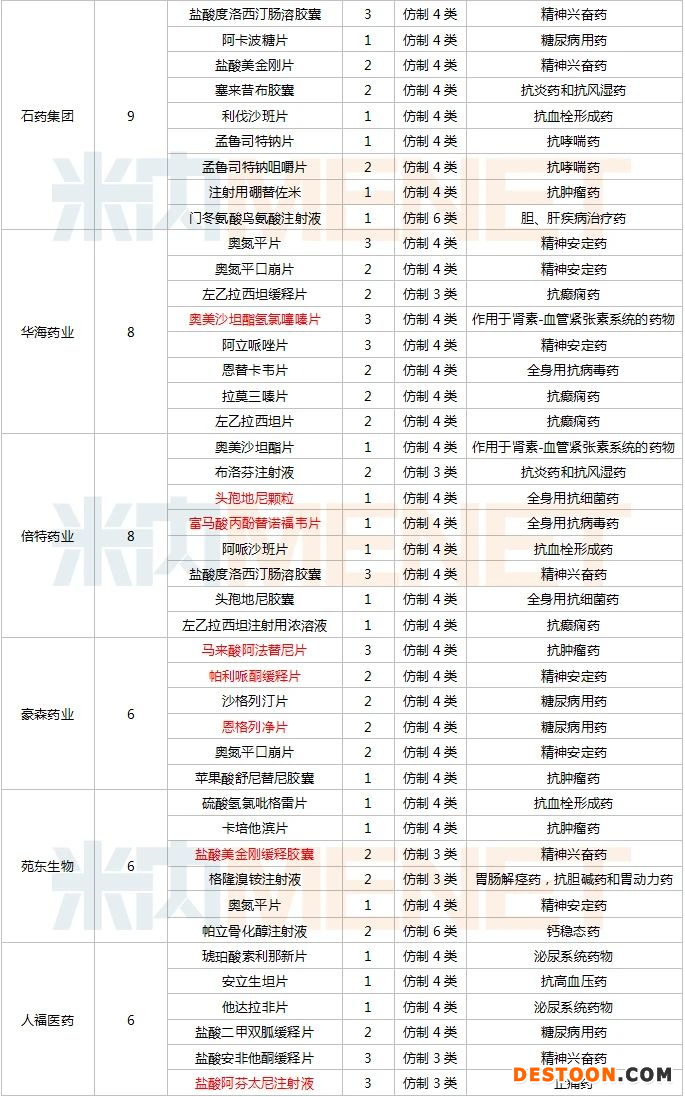 揚子江藥業(yè)集團、東陽光藥并列第四,均有13個品種獲批;石藥集團有9個品種獲批;華海藥業(yè)、倍特藥業(yè)均有8個品種獲批;豪森藥業(yè)、苑東生物及人福醫(yī)藥這3家藥企各有6個品種獲批。