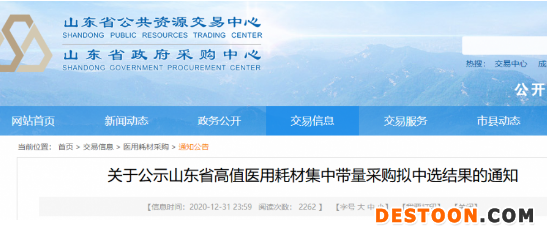 2020年12月31日,山東省政府采購(gòu)中心最新發(fā)布了一則《關(guān)于公示山東省高值醫(yī)用耗材集中帶量采購(gòu)擬中選結(jié)果的通知》(以下簡(jiǎn)稱《通知》)。