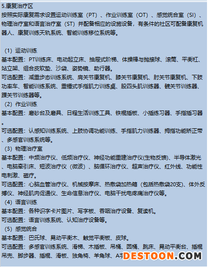社區(qū)醫(yī)院建設的重點建設任務還包括,推進社區(qū)衛(wèi)生服務中心康復功能建設,為有康復需求的患者,提供診斷、功能評定、康復治療、康復護理、居家康復和轉診服務等。