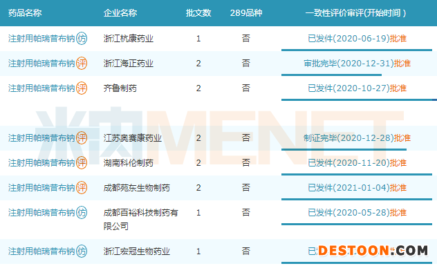 注射用帕瑞昔布鈉此前過(guò)評(píng)企業(yè)