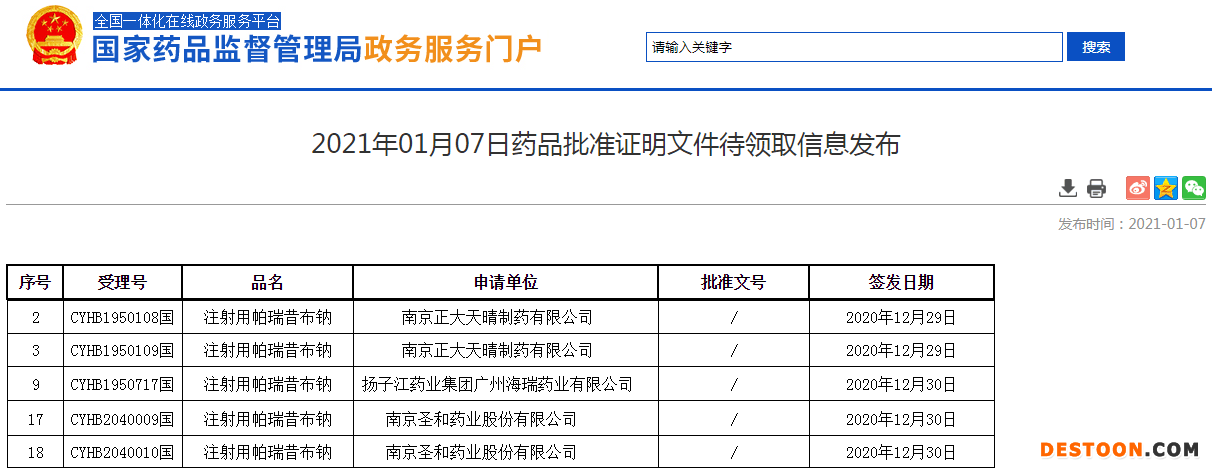 核心提示:1月8日訊 1月7日,NMPA官網(wǎng)顯示,南京正大天晴、揚(yáng)子江藥業(yè)集團(tuán)、南京圣和藥業(yè)的注射用帕瑞昔布鈉通過(guò)一致性評(píng)價(jià)。1月6日,海正