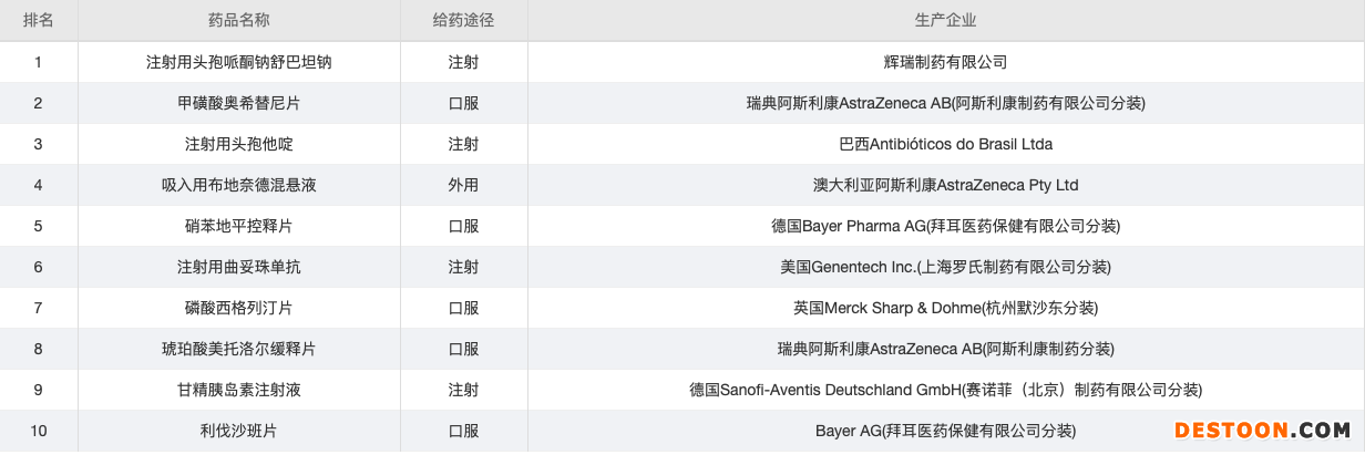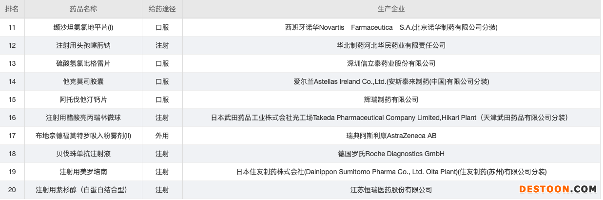 總的來看,名單變化不大,讓我們看一下最新的藥品銷售金額Top20的情況。