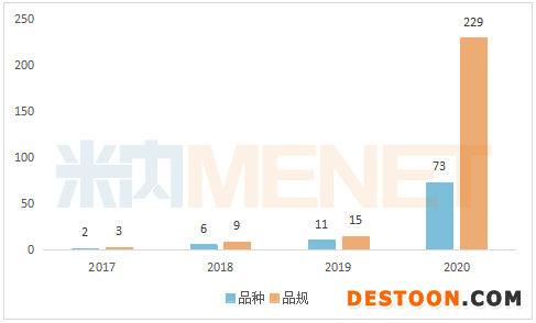 2020年是注射劑一致性評價的爆發(fā)年。以藥品批準日期及批件簽發(fā)日期計,2017-2019年過評的注射劑分別有2個品種(受理號3個)、6個品種(受理號9個)、11個品種(受理號15個)。而2020年過評的注射劑有73個品種(受理號229個),不僅數(shù)量較前三年大幅增加,一致性評價補充申請也大開閘,以新注冊分類報產(chǎn)不再是注射劑過評的主要方式,早期布局注射劑一致性評價的企業(yè)獲益顯著。