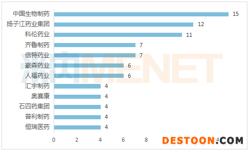注射劑過評TOP12企業(yè)(以集團計,單位:個)