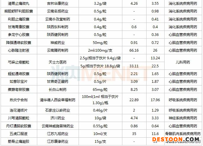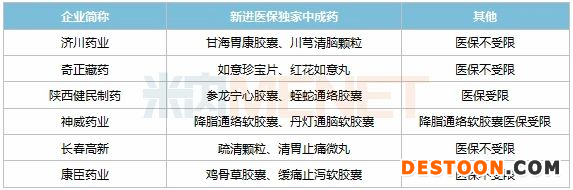 濟川藥業(yè)的甘海胃康膠囊、川芎清腦顆粒醫(yī)保均不受限,且川芎清腦顆粒是唯一一款獨家神經系統(tǒng)中成藥;奇正藏藥的如意珍寶片、紅花如意丸醫(yī)保均不受限,且紅花如意丸是唯一一款獨家婦科中成藥;長春高新的疏清顆粒、清胃止痛微丸在2019年中國公立醫(yī)療機構終端的銷售額增速均超過60%。