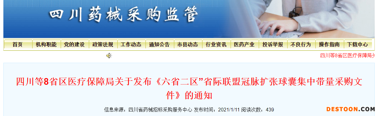 1月11日,四川藥械采購監(jiān)管官網發(fā)布《“六省二區(qū)”省際聯盟冠脈擴張球囊集中帶量采購文件》(下稱《帶量采購文件》)。
