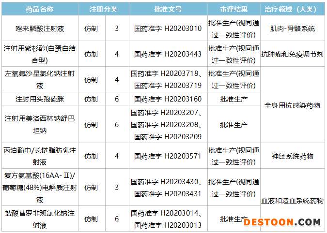 表1:2020年科倫及子公司獲批的注射劑新品情況