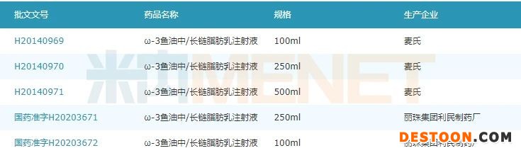ω-3魚油中/長鏈脂肪乳注射液主要用于當(dāng)口服或腸內(nèi)營養(yǎng)不足、有禁忌或無法進(jìn)行時,作為腸外營養(yǎng)的組成部分,為成人提供包括人體必需ω-6、ω-3脂肪酸在內(nèi)的脂肪,原研產(chǎn)品最早于2004年在歐洲上市,2014年在進(jìn)口國內(nèi)。