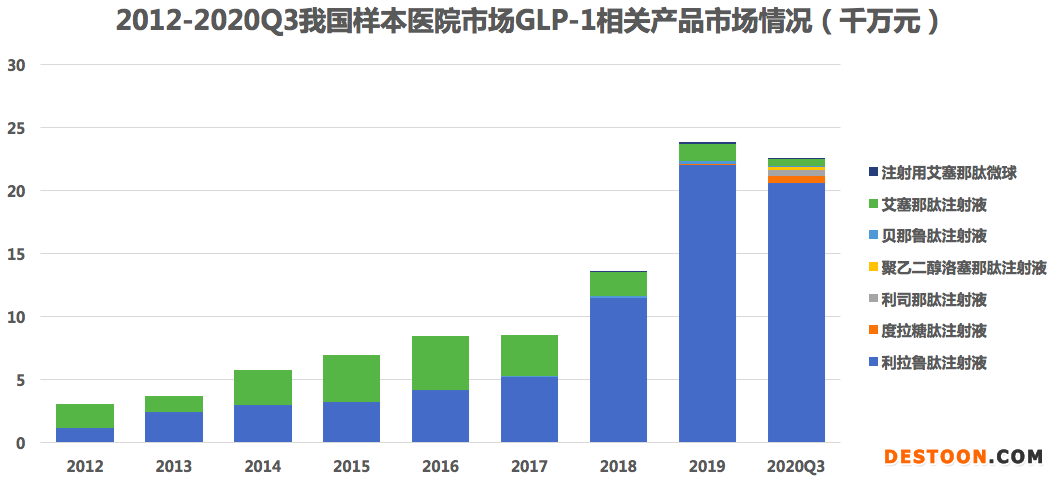 藥物綜合數(shù)據(jù)庫(PDB)顯示,在我國GLP-1樣本醫(yī)院中,由于短效GLP-1上市較早,其市場份額占據(jù)主導(dǎo)。其中,利拉魯肽注射液市場份額增長最快,從2012年的37%上升至2020年Q1-3的91%。