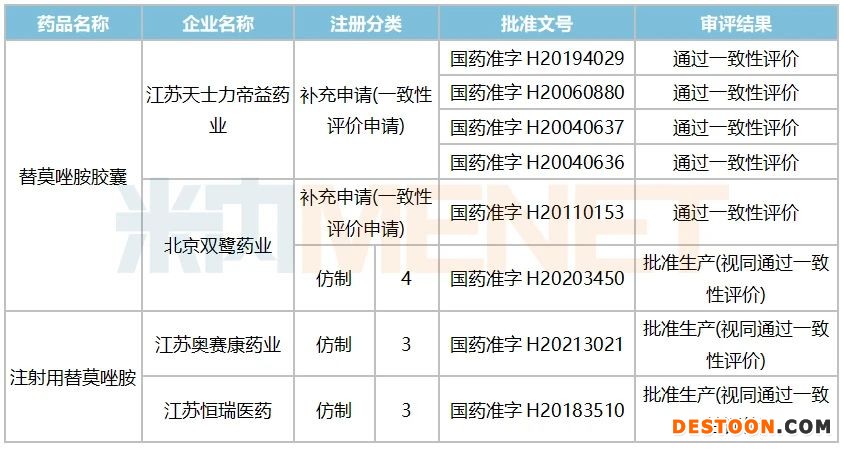 表1:目前過評的替莫唑胺相關產(chǎn)品情況