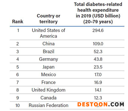 圖表3. 成年(20-79歲)糖尿病患者醫(yī)療相關支出前10名國家或地區(qū)(2019年)
