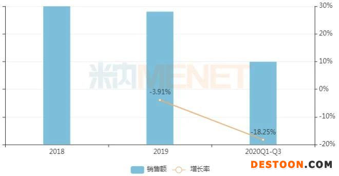 米內(nèi)網(wǎng)數(shù)據(jù)顯示,近年重點(diǎn)省市公立醫(yī)院終端神經(jīng)系統(tǒng)化藥市場增速放緩,2020年前三季度雖然同比下滑18.25%,但銷售額仍超過100億元規(guī)模。從季度銷售趨勢來看,第一季度同比下滑超過35%,第二季度同比下滑14%,第三季度同比下滑不足5%,市場逐步回暖。