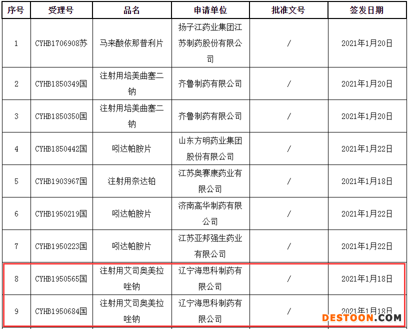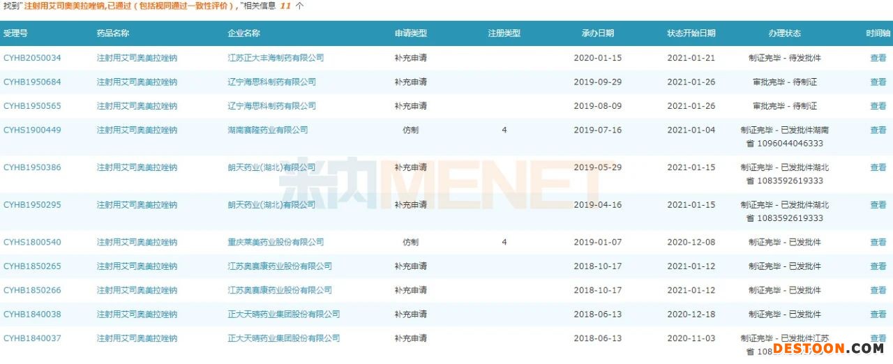 1月28日訊 1月27日,國家藥監(jiān)局官網(wǎng)顯示,遼寧海思科制藥的注射用艾司奧美拉唑鈉以補充申請獲批過評。日前,江蘇正大豐海制藥的注射用艾司奧美拉唑鈉也以補充申請獲批過評。米內(nèi)網(wǎng)數(shù)據(jù)顯示,2019年中國公立醫(yī)療機構(gòu)終端艾司奧美拉唑(埃索美拉唑)注射劑銷售額突破30億元。截至目前,注射用艾司奧美拉唑鈉已有正大天晴藥業(yè)集團、江蘇奧賽康藥業(yè)等7家企業(yè)過評。