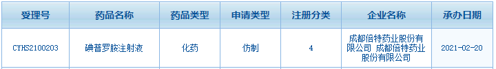 圖1:成都倍特藥業(yè)申報的碘普羅胺注射液注冊情況