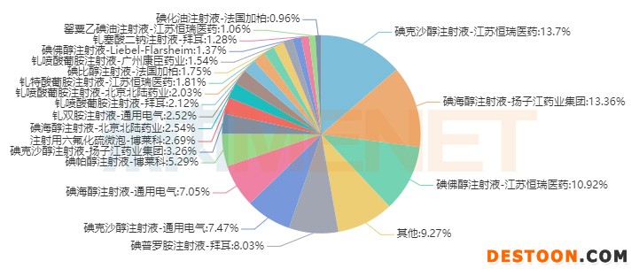 米內(nèi)網(wǎng)數(shù)據(jù)顯示,2019年中國城市公立醫(yī)院、縣級公立醫(yī)院、城市社區(qū)中心及鄉(xiāng)鎮(zhèn)衛(wèi)生院(簡稱中國公立醫(yī)療機構(gòu))終端造影劑市場規(guī)模已經(jīng)上漲至150億元。2020上半年受疫情影響銷售規(guī)模有所下滑,TOP20品牌中前三位已被國內(nèi)藥企拿下,拜耳的碘普羅胺注射液排在第四位,該產(chǎn)品目前暫無國內(nèi)仿制獲批,僅有成都倍特申報上市。