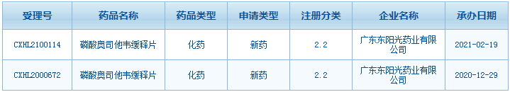 圖2:東陽光藥的磷酸奧司他韋緩釋片申報情況