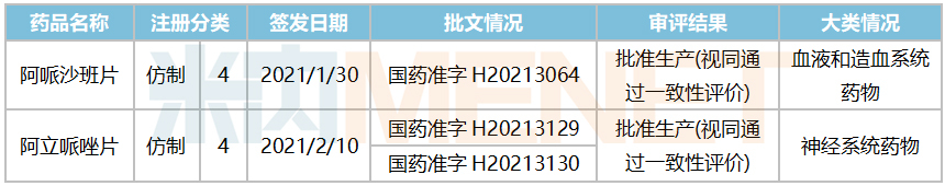2021年才剛揭開帷幕,東陽光藥的兩大高端仿制藥阿哌沙班片、阿立哌唑片相繼獲批,為公司在血液和造血系統(tǒng)藥物領域以及神經(jīng)系統(tǒng)藥物領域增添了新成員。